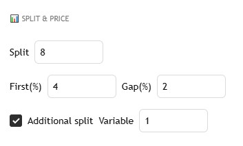 Split : Sets the total number of buy orders. The total capital is divided accordingly.