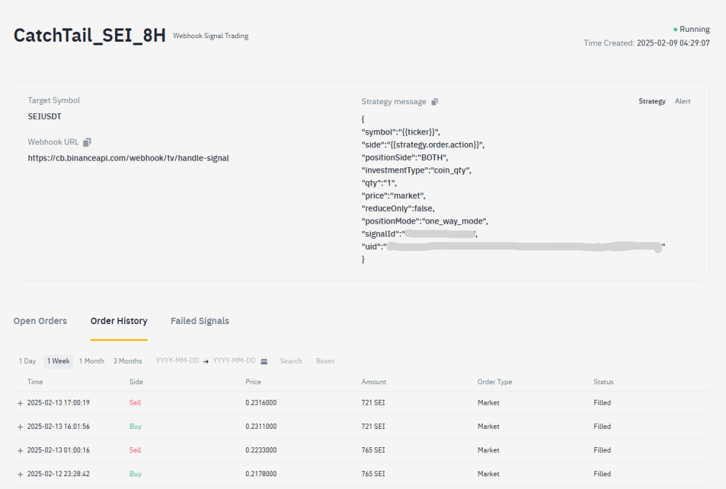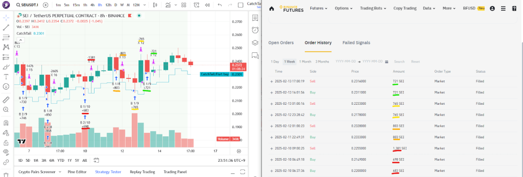 This shows the details of the signal trading currently being tested for SEI.
