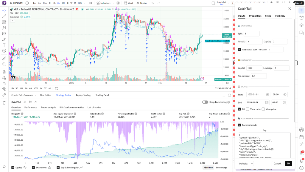 CatchTail is a short-term counter-trend strategy designed for crypto assets. It enables automated trading on Binance through signal trading via TradingView webhooks. You are invited to use this strategy for $99 per month. Only paid TradingView users with webhook access (Essential plan or higher) can utilize it.