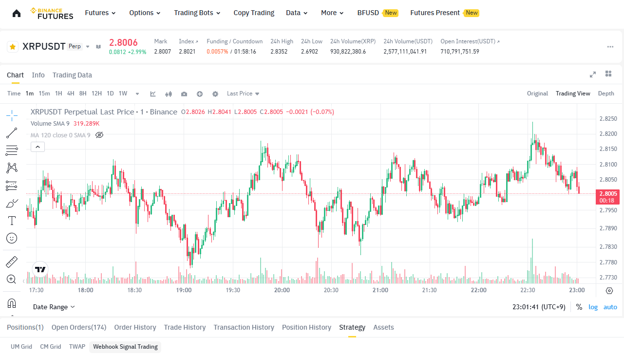 TradingView Strategy -> Alert -> Webhook -> Binance Signal Trading You can use Binance’s built-in signal trading feature without needing a webhook bot.