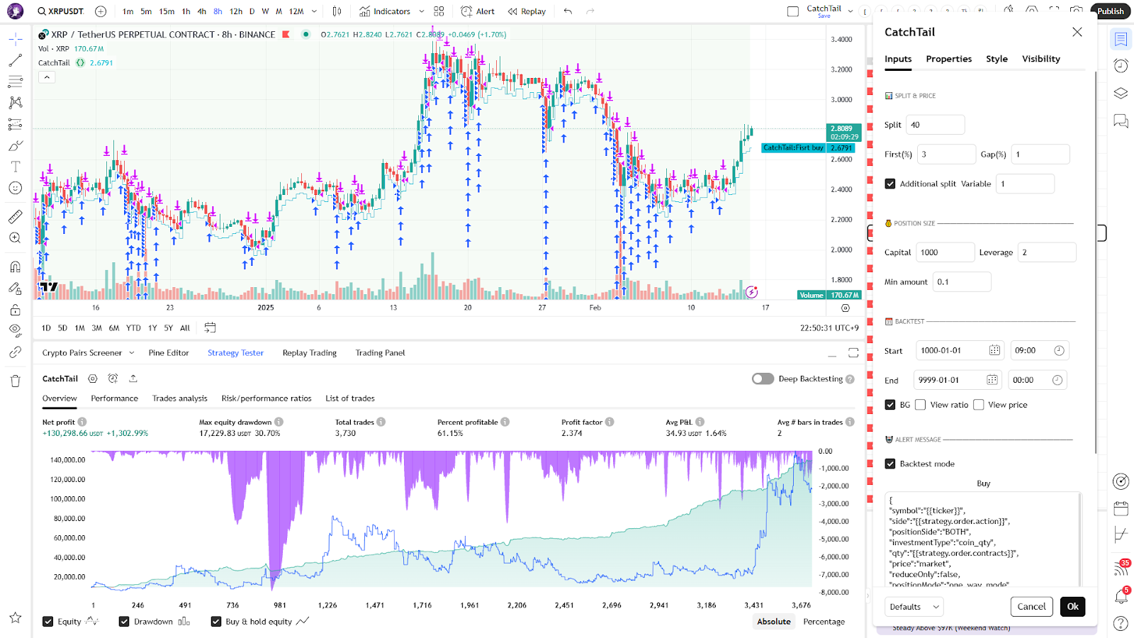 CatchTail is a short-term counter-trend strategy designed for crypto assets. It enables automated trading on Binance through signal trading via TradingView webhooks. You are invited to use this strategy for $99 per month. Only paid TradingView users with webhook access (Essential plan or higher) can utilize it.