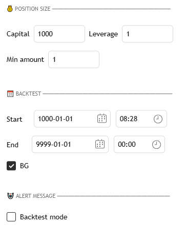 Start / End : Defines the start and end dates of the backtest.