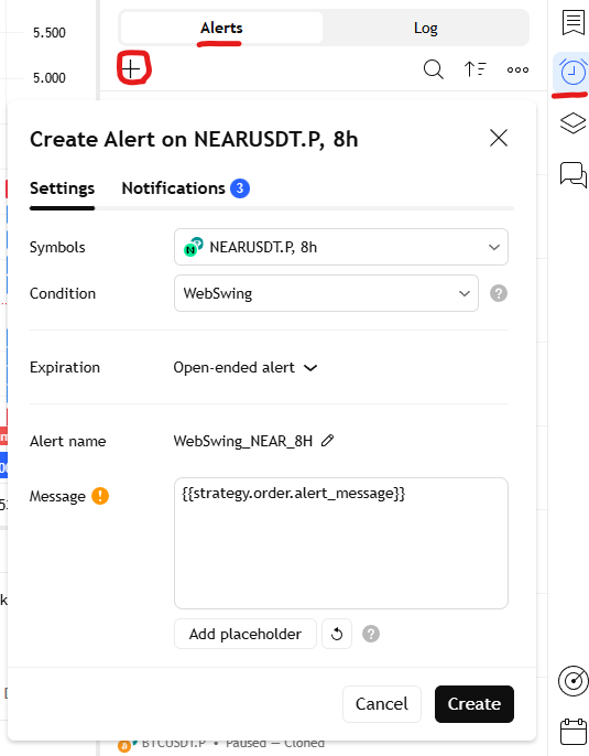 Alert name : it is recommended to name the alert based on the coin and time frame.