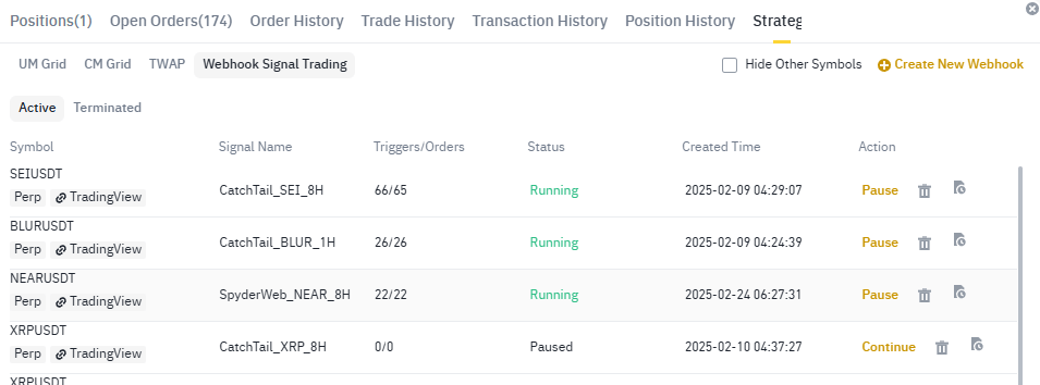 You can check the Webhook Signal Trading you just created.